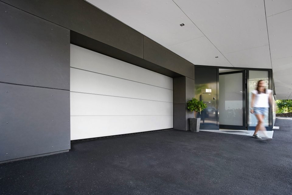 Overlap Silvelox è una porta per garage motorizzata che si richiude su se stessa senza guide a soffitto